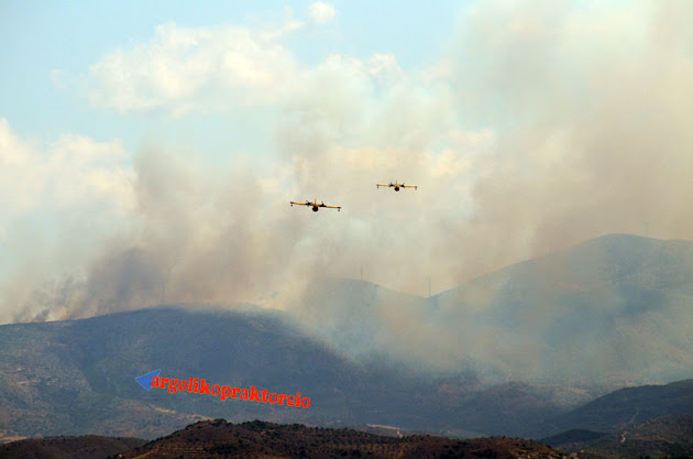 Μεγάλη φωτιά εκδηλώθηκε από άγνωστη μέχρι στιγμής αιτία σήμερα το πρωί στην είσοδο του χωριού Αραχναίο στην Αργολίδα.